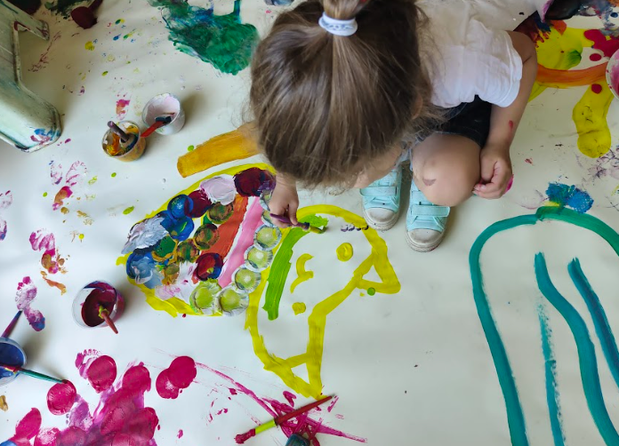 Festa de aniversário com muita alegria e diversão e, no dia seguinte: pinturas na Clarabóia! Foram as duas a uma manhã de pinturas em grande escala que resultou numa Pipoca (já com 5 anos) mais recatada face às outras crianças, mas a pintar o que queria (dinossauros, sol, arco-íris, gatos,…) e uma Pipoca mais nova muito resistente à primeira interação (40 minutos numa atividade de 1h e pouco) mas depois a soltar toda a franga.